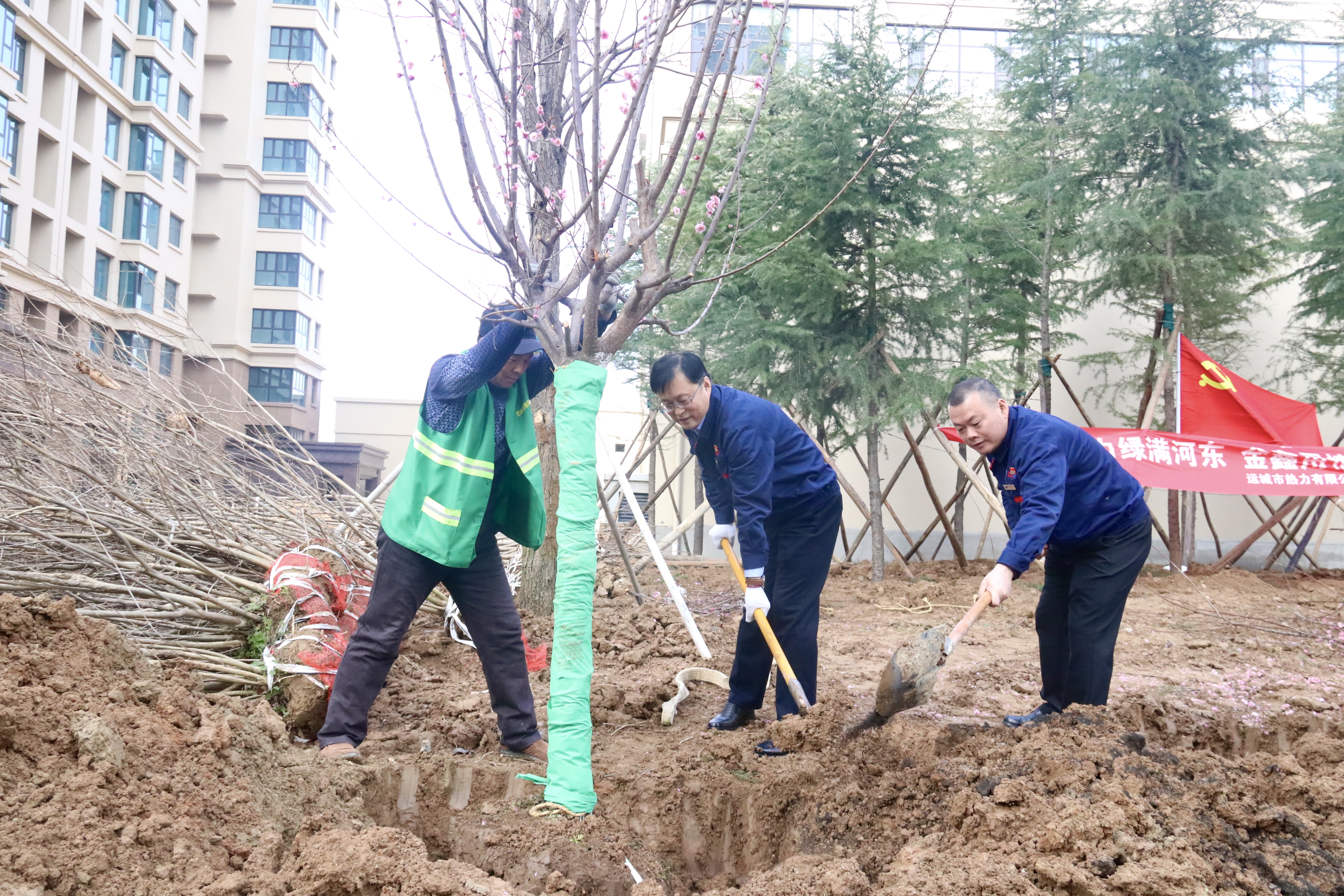 人勤春來早,植綠正當(dāng)時(shí)。3月12日,機(jī)關(guān)第二黨支部組織全體黨員、積極分子,協(xié)同黨群工作部、金鑫物業(yè)工作人員在濱湖一號小區(qū)舉行義務(wù)植樹活動(dòng)。黨委委員、紀(jì)委書記王尚君同志,黨委委員、副總經(jīng)理樊晟同志,總經(jīng)理助理王學(xué)鋒同志以普通黨員身份參加了活動(dòng),與大家一起植樹,為初春的小區(qū)增添了清新綠意。在植樹過程中,同志們互相幫助,輪番上陣,既參與植樹綠化,美化了環(huán)境,增強(qiáng)了植綠、護(hù)綠、愛綠的意識,同時(shí)也提升了黨支部的凝聚力和戰(zhàn)斗力。人勤春來早,植綠正當(dāng)時(shí)。3月12日,機(jī)關(guān)第二黨支部組織全體黨員、積極分子,協(xié)同黨群工作部、金鑫物業(yè)工作人員在濱湖一號小區(qū)舉行義務(wù)植樹活動(dòng)。黨委委員、紀(jì)委書記王尚君同志,黨委委員、副總經(jīng)理樊晟同志,總經(jīng)理助理王學(xué)鋒同志以普通黨員身份參加了活動(dòng),與大家一起植樹,為初春的小區(qū)增添了清新綠意。在植樹過程中,同志們互相幫助,輪番上陣,既參與植樹綠化,美化了環(huán)境,增強(qiáng)了植綠、護(hù)綠、愛綠的意識,同時(shí)也提升了黨支部的凝聚力和戰(zhàn)斗力。